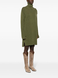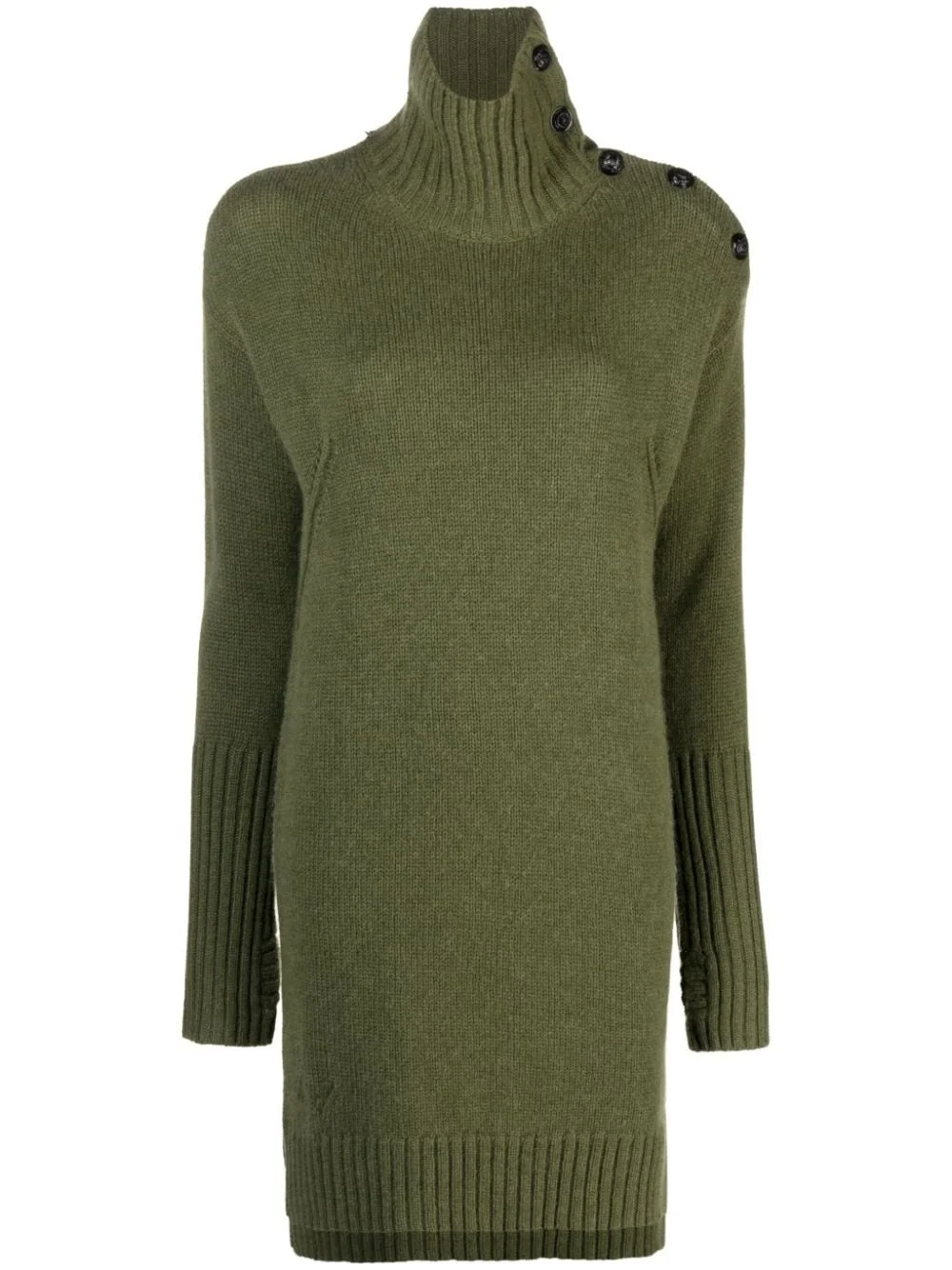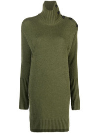 Almira cashmere dress Zadig&Voltaire's olive-green Almira dress is an adaptable take on classic knitwear codes. It’s spun from sumptuous cashmere threads to a sweater dress silhouette with a row of embossed buttons that unfasten through the shoulder to adjust the high neck. Highlights - Olive green - Cashmere - High neck - Button fastening at the shoulder - Long sleeves - Short side slits - Ribbed trim - Straight hem - Thigh-length Imported Composition Cashmere 100% Washing instructions Hand Wash