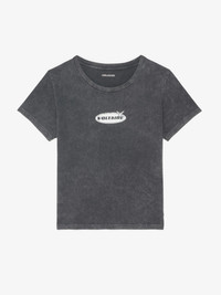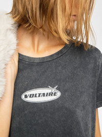 Round-neck, short-sleeve T-shirt with rhinestone customization. Description & details - T-shirt in 100% cotton - "Voltaire" embroidery with rhinestones at the front - Round neck - Short sleeves Model is 177 cm / 5' 9" and is wearing a size S This item fits true to size. Choose your usual size. Composition 100% Cotton** Care - Machine-wash inside out on a 30°C delicate cycle with similar colours - Air dry - Iron inside out at a maximum of 110°C, avoiding any customised details Product code: JWTS02840_BLACK