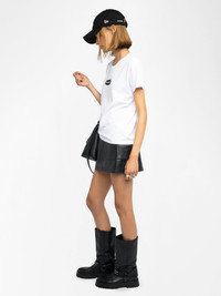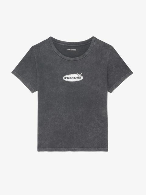 Round-neck, short-sleeve T-shirt with rhinestone customization. Description & details - T-shirt in 100% cotton - "Voltaire" embroidery with rhinestones at front - Round neck - Short sleeves Model is 177 cm / 5' 9" and is wearing a size S This item fits true to size. Choose your usual size. Composition 100% Cotton* Care - Machine-wash inside out on a 30°C delicate cycle with similar colours - Air dry - Iron inside out at a maximum of 110°C, avoiding any customised details Product code: JWTS02840_WHITE