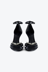 Women’s black iguana-embossed leather court shoes with straps and diamanté wings charm. Description & details - Women’s black iguana-embossed leather court shoes - Adjustable strap with metal buckle and crossover straps - Diamanté wings charm - Heel height: = 3.5 in - Made in Portugal This item is true to size. We recommend buying your usual size. Composition 100% CALFSKIN Care - Protect your leather item from humidity and any source of heat (radiator, sun) - Avoid your item coming into contact with water - Regularly maintain the shine of your smooth or grained leather shoes with a leather polish Product code: SWCT00828_NOIR