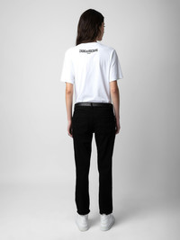 Women's black slim jeans. Description & details Zadig&Voltaire’s iconic Ava slim-fit jeans feature zipped pockets and raw edges for a casual and timeless rock “n” roll style. - Zadig&Voltaire Women’s slim-fit jeans in slightly stretch, black cotton - Cropped - Raw hems - Zipped front pockets - 1 welt pocket - Belt loops - Metal half-moon on the sides - ZADIG&VOLTAIRE leather label on the back Model is 178 cm/5'10" and is wearing a size 28 Model is 178 cm / 5' 10" and is wearing a size 36 This item is true to size. We recommend buying your usual size. Composition 98% COTTON* 2% ELASTANE Care - Machine-wash inside out on a 30°C delicate cycle with similar colours - Air dry - Iron inside out at a maximum of 150°C, or in case of customised details, at a maximum of 110°C avoiding the customised details Product code: PWGCT3003F_NOIR
