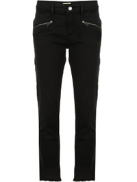 Black cotton blend Ava jeans from Zadig & Voltaire featuring a cropped length, a waistband with belt loops, a button and zip fly and front zipped pockets. Size & Fit Model Measurements: Height: 1.76 m Bust/Chest: 74.0 cm Hips: 84.0 cm Waist: 58.0 cm Model wears size 27 Fabric and Care Designer Style ID: PWGCT3003F Designer Colour: BLACK Composition: : Cotton 98%, Spandex/elastane 2% Washing instructions: Dry Clean Only Made in Tunisia