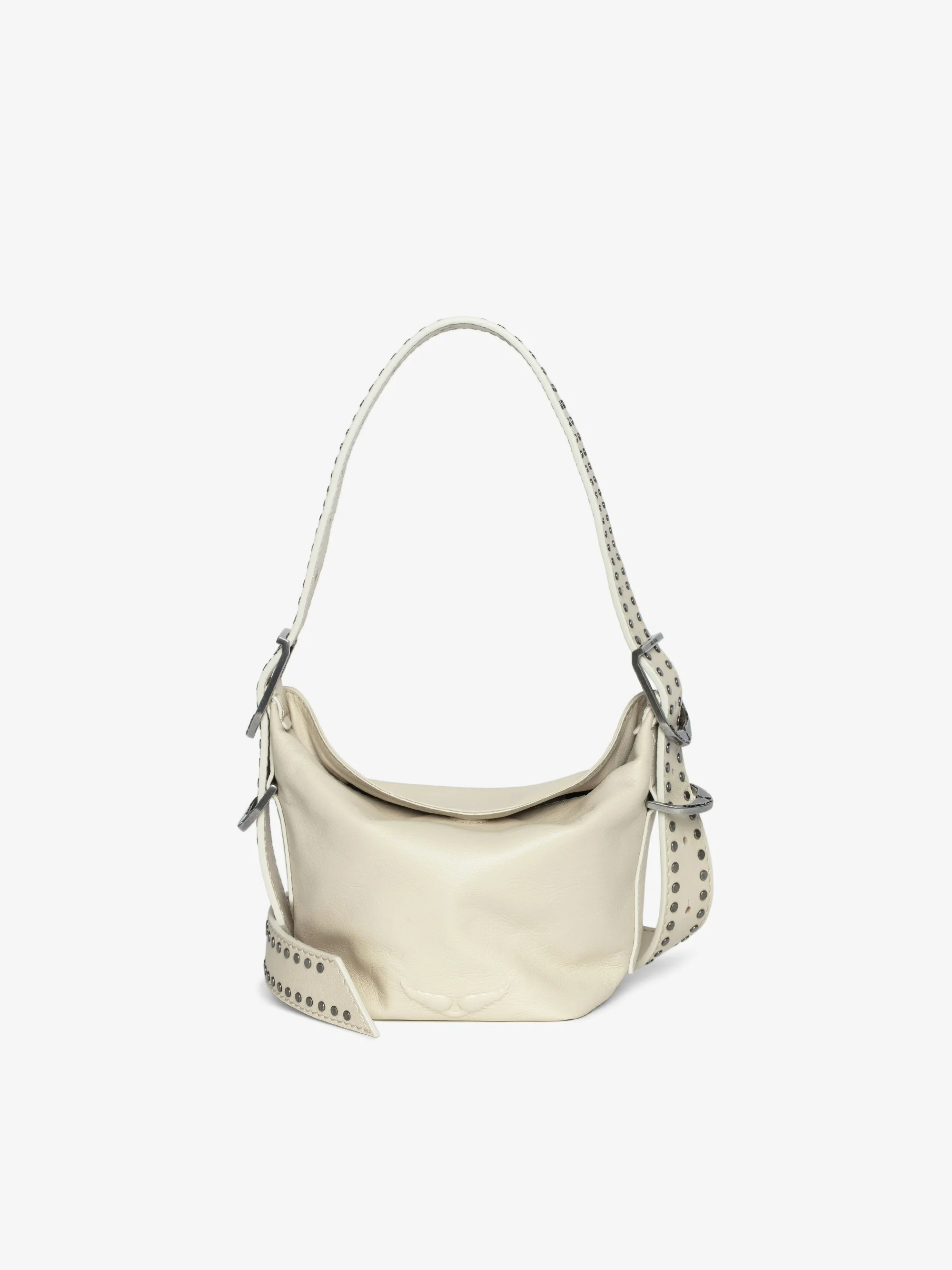 Leather bag with studded shoulder strap and debossed wing signature. Description & details - Baby Jane bag in ecru Flash leather for women - Adjustable and removable leather shoulder strap with studs - Flap with magnetic closure - Applied inner pocket - Debossed wing signature - Can be carried by hand, shoulder or cross-body - Model made in Turkey 14 x 16 x 11 cm Composition 100% Cow leather Care - Protect your leather item from humidity and any source of heat (radiator, sun) - Avoid your item coming into contact with water - Regularly care for your leather item using a colourless nourishing cream for leather, suitable for leather goods - Ensure you wear your item with similar colours - Avoid overfilling your bag to ensure its durability - In case of stains, contact a leather professional Product code: LWBA03887_FLASH