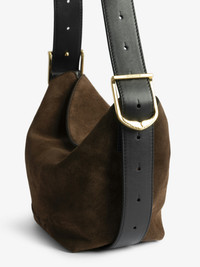 Suede bag with adjustable shoulder strap and embossed wings signature. Description & details - Suede leather bag - Adjustable and removable shoulder strap - Flap with magnetic closure - Applied interior pockets - Embossed wings signature - Worn on shoulder or cross-body 16 x 11 cm Composition 100% Cow leather Care - Protect your leather item from humidity and any source of heat (radiator, sun) - Avoid your item coming into contact with water - Regularly care for your leather item using a colourless nourishing cream for leather, suitable for leather goods - Ensure you wear your item with similar colours - Avoid overfilling your bag to ensure its durability - In case of stains, contact a leather professional Product code: LWBA04199_WOOD