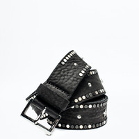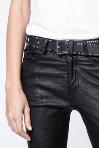 Studded leather belt Description & details - Women’s black leather studded belt - Adjustable buckle - Round and star-shaped studs - Made in France Width: 3,5 cm Composition 100% COW LEATHER Product code: PWGAC0901F_NOIR