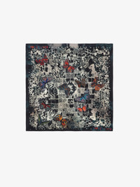 Navy blue silk scarf with butterfly print and lace. Description & details - Women’s Ink navy blue silk square scarf - Butterfly print and lace - Made in Italy 65 x 65 cm Composition 100% SILK** Care - Hand-wash or machine-wash inside out in a mesh laundry bag on a 20°C delicate cycle with a maximum spin speed of 400 rpm - Air dry flat - Iron inside out at a maximum of 110°C Product code: OWSC00487_INK