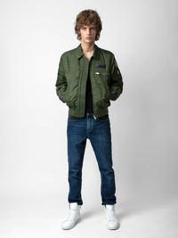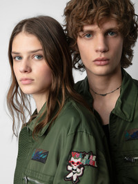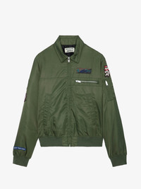 Khaki jacket with zip fastening, pockets and customized details designed by Humberto Cruz. Description & details The Bolid jacket is part of the UNISEX collection. A free-spirited wardrobe by Zadig&Voltaire, the UNISEX collection represents the fusion of feminine and masculine features. Customized details designed by Humberto Cruz, an artist and illustrator from San Diego. Influenced by pop culture, fashion and colors, he describes his work as spontaneous and quirky. - Unisex Used khaki oversized jacket - Shirt collar and zip fastening - 2 side pockets and 2 zip pockets on the chest and left sleeve - Long sleeves, ribbed trim and tighter hem and cuffs - Contrasting patches on the front and back This item is true to size. We recommend buying your usual size. Composition 100% POLYAMID* Care This garment should be dry-cleaned only. Product code: WWOW00632_USED KAKI