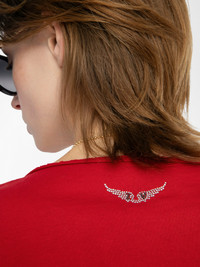 Short-sleeved Henley T-shirt with rhinestone wings on back. Description & details - Henley T-shirt in 100% cotton - Henley collar with 5 buttons - Short sleeves - Rhinestone wings signature on back Model is 180 cm / 5' 10" and is wearing a size s This item is true to size. We recommend buying your usual size. Composition 100% Cotton* Care - Machine-wash inside out on a 30°C delicate cycle with similar colours - Air dry - Iron inside out at a maximum of 110°C, avoiding any customised details Product code: JWTN00447_LOVE