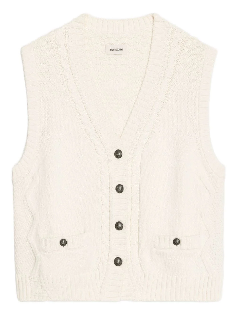 cable-knit vest Highlights - Cream - V-neck - Cable knit - Button fastening Imported Composition Cotton 85%, Merino 15% Washing instructions Hand Wash