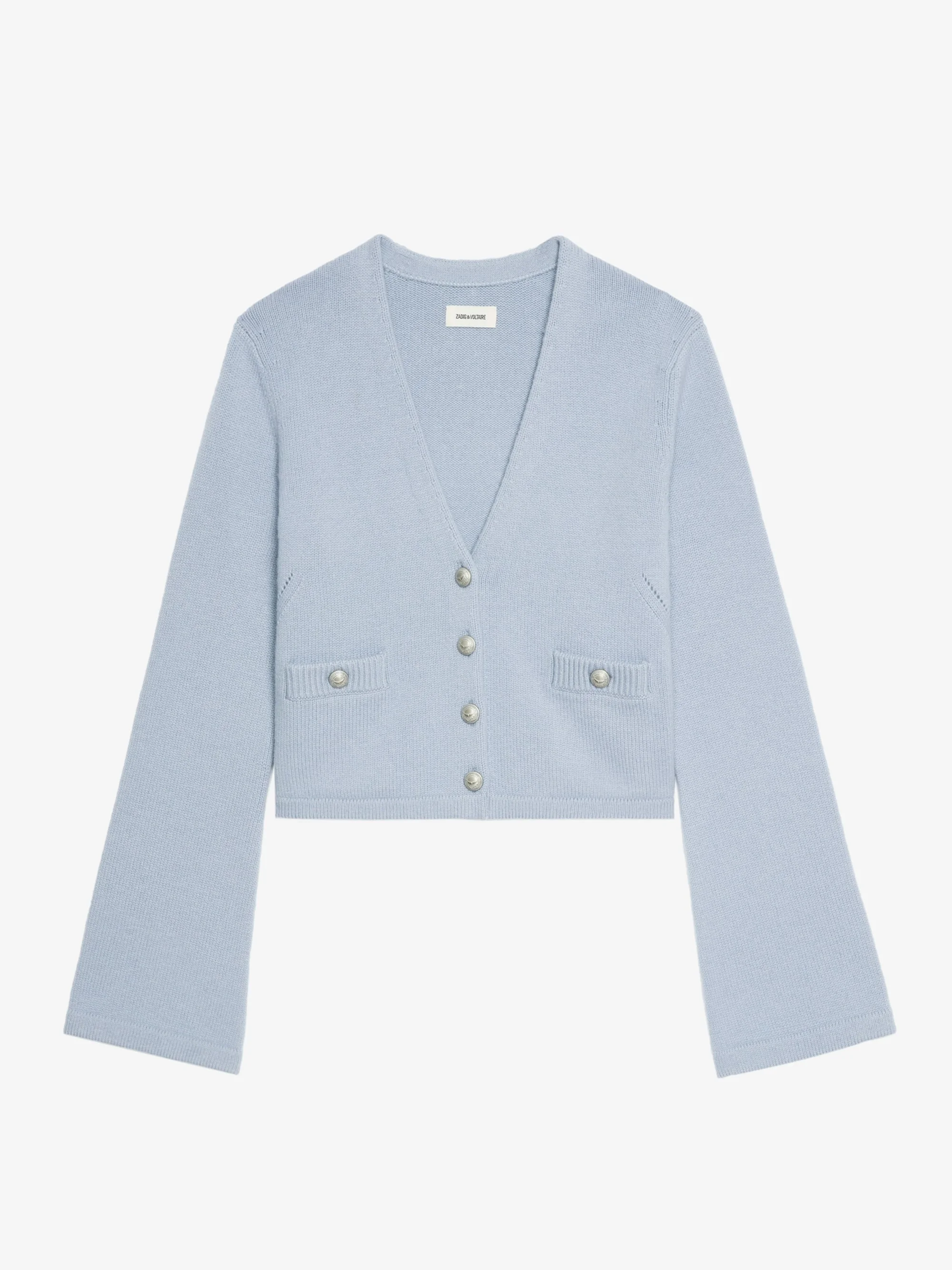 Button-up V-neck cardigan with patch pockets on the front. Description & details - Cardigan in 100% cashmere - V-neck - Button-up closure - 2 patch pockets on the front - Long sleeves Model is 180 cm / 5' 10" and is wearing a size S This item fits true to size. Choose your usual size. Composition 90% Wool* 10% Cashmere Care - Hand-wash or machine-wash on a 20°C wool cycle with a maximum spin speed of 400 rpm - Do not wring - Air dry flat - Iron inside out at a maximum of 110°C, avoiding any customised details Product code: KWCA01633_LIGHT BLUE