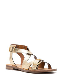Cecilia Caprese crinkled-finish sandals Highlights - Gold-tone - Metallic finish - Crinkled finish - Open toe - Crossover strap at the toe - Double buckle fastening - Branded footbed - Flat sole Imported Composition Outer: Calf Leather 100% Lining: Calf Leather 100% Sole: Calf Leather 100%