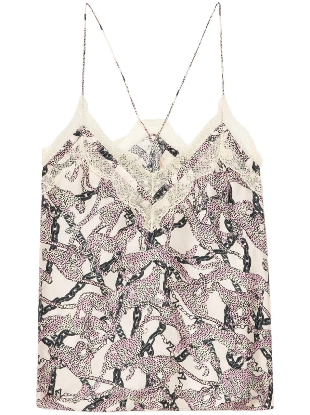 Christo Wild Chains top Highlights - Ecru - Multicolour - Silk - Wild chain print - V-neck - Lace trim to the neckline - Spaghetti straps - Curved hem Imported Composition Silk 100% Washing instructions Read Manufacturer Guidelines