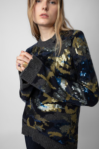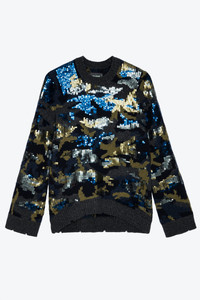 Women’s camouflage grey merino wool sweater with sequins. Description & details - Women’s Ardoise grey merino wool sweater - Camouflage motifs, contrasting sequins and pointelle ZV signature - Round neckline - Long sleeves and distressed ribbed trim Model is 170 cm / 5' 6" and is wearing a size S This item is true to size. We recommend buying your usual size. Composition 100% WOOL MERINOS* Care This garment should be dry-cleaned only. Product code: KWSW01582_ARDOISE
