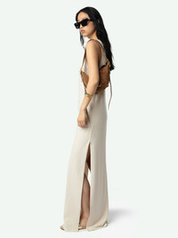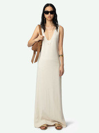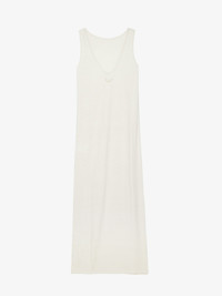 A harmonious blend of effortless elegance and contemporary edge. This sleeveless, reversible long dress features daring side slits, exuding a free-spirited allure that embodies the brand's signature rock 'n' roll-inspired style. The Deva Dress is designed for the modern woman who embraces both comfort and chic sophistication. Description & details - Sleeveless long dress in washed cotton and linen - V-neck - Side slits - Reversible to be worn two ways Model is 171 cm / 5' 7" and is wearing a size S This item is true to size. We recommend buying your usual size. Composition 70% Cotton** 30% Linen Care - Machine-wash inside out on a 30°C delicate cycle with similar colours - Air dry - Iron inside out at a maximum of 110°C, avoiding any customised details Product code: JWDR01079_ECRU