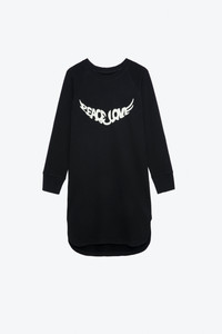 Women’s short black cotton dress with wing-shaped “Peace & Love” slogan. Description & details - Women’s short black cotton dress - Round neckline - Wing-shaped “Peace & Love” slogan on the front - Short sleeves, side slits and raw edges Model is 179 cm / 5' 10" and is wearing a size S This item is true to size. We recommend buying your usual size. Composition 100% COTTON* Care Hand-wash or machine-wash your garment at a maximum of 86°F, in a mesh laundry bag and inside out, with a gentle spin cycle. Air-dry. Iron your garment on a low heat setting or steam from a distance of 8 in, being particularly careful with customized details. Product code: JWDR00057_NOIR