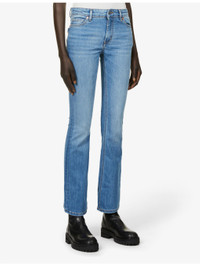PRODUCT DETAILS - Zadig & Voltaire stretch-denim jeans - 91% cotton, 7% polyester, 2% elastane - Exposed button and concealed zip-fly fastenings at front - Slim fit, mid-rise, flared leg, belt loops, five pockets, faded wash and whiskering, branded patch at back waistband, darts at back, v-shaped yoke at back - Machine wash cold - True to size - Size 26: rise 10in / 26cm, inside leg 26in / 66cm, leg opening 10in / 26cm - Midweight, slight stretch Ref: R03799383
