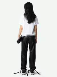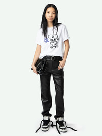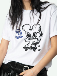 Round neck, short sleeve T-shirt with Humberto Cruz mouse on the front. Description & details - Oversized organic cotton T-shirt - Mouse motif adorned with rhinestones - Ribbed round neck - Short sleeves - Customizations created by Humberto Cruz, illustrator artist from San Diego. Influenced by pop culture, fashion and colors, he describes his work as spontaneous and offbeat Model is 176 cm / 5' 9" and is wearing a size S This item is true to size. We recommend buying your usual size. Composition 100% Cotton* Care - Machine-wash inside out on a 30°C delicate cycle with similar colours - Air dry - Iron inside out at a maximum of 110°C, avoiding any customised details Product code: JWTS02734_WHITE
