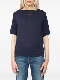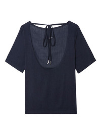 Ella T-shirt Highlights - Navy blue - Rear tie fastening - Short sleeves - Open back - Straight hem Imported Composition Cotton 100%