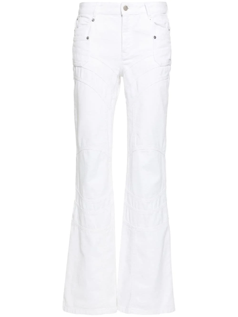 Elvira mid-rise flared jeans Highlights - White - Cotton - Denim - Panelled design - Decorative stitching - Mid-rise - Belt loops - Concealed fly and button fastening - Classic five pockets - Two side patch pockets - Flared Imported Composition Cotton 100% SIZE & FIT Model measurements Height 5 ft 10 in(1.77 m) Bust/Chest 32.28 in(82 cm) Hips 35.03 in(89 cm) Waist 25.19 in(64 cm) FittingInformation Designed with a flared hem, these jeans allow for a close fit at the waist with a slim fit over the leg and widening towards the hem Sturdy and hard-wearing, this denim piece offers no stretch This piece fits true to size – take your usual size Washing instructions Dry Clean Only