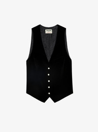 Black velvet vest with button fastening embellished with diamante and a pocket. Description & details - Women's black velvet vest - V neckline - Button fastening embellished with diamante - 1 welt pocket on the chest Model is 176 cm / 5' 9" and is wearing a size 36 This item is true to size. We recommend buying your usual size. Composition 100% Cotton Care This garment should be dry-cleaned only. Product code: WWBL00865_NOIR