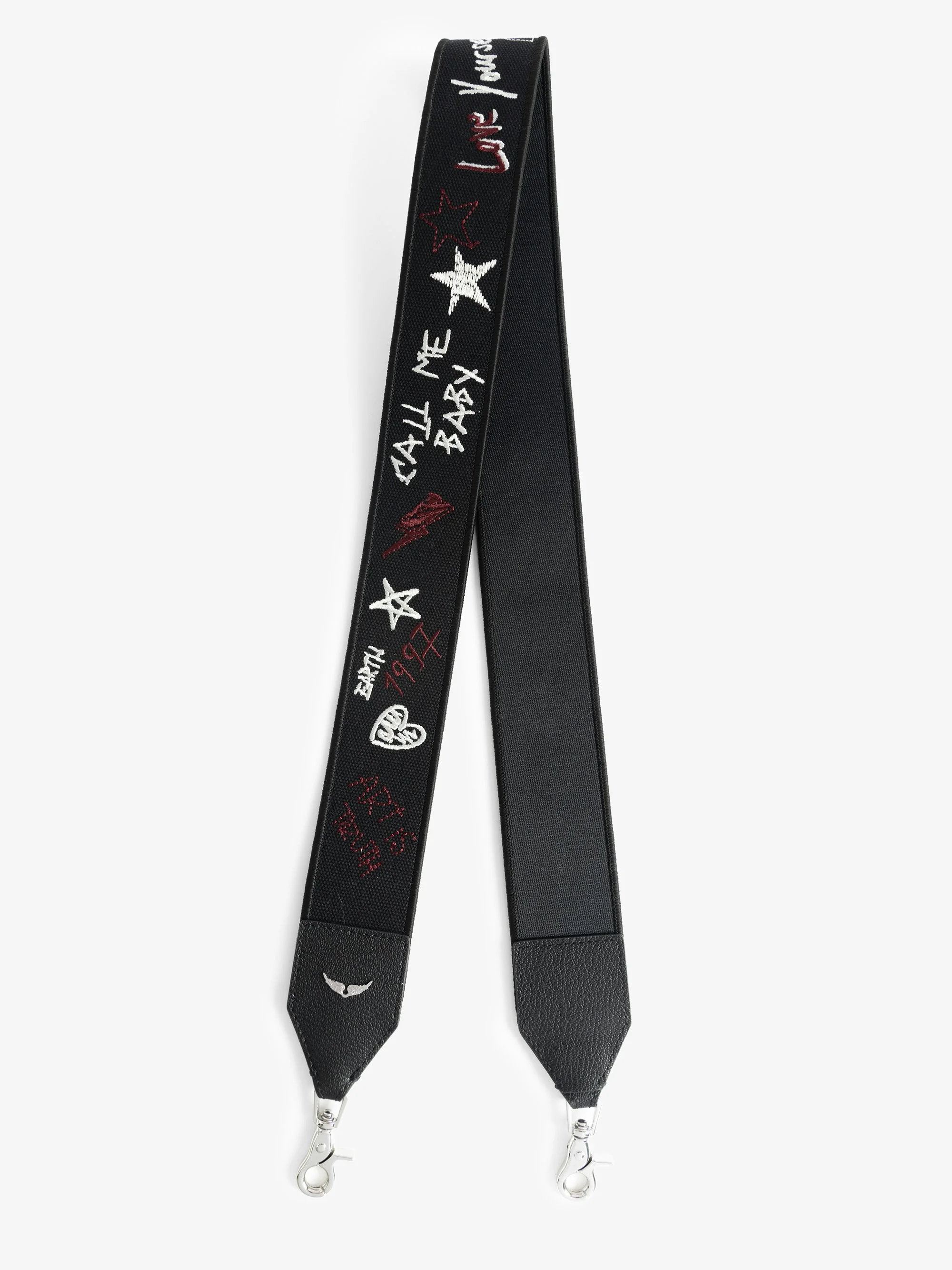 Punk-style canvas shoulder strap, embroidered with signature wings. Description & details - Punk-style canvas shoulder strap - Snap hooks - Signature wings embroidery 100 x 4 cm Composition 50% Cotton** 50% Cotton Care - Do not machine-wash your item - In case of stains, contact a leather professional Product code: LWST01130_BLACK