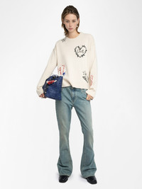 Round neck sweater with all-over embroidery. Description & details - Sweater in 100% cashmere - Embroidery - Round neck - Long sleeves - ZV logo Model is 180 cm / 5' 10" and is wearing a size S This item fits true to size. Choose your usual size. Composition 100% Cashmere Care - Hand-wash or machine-wash on a 20°C wool cycle with a maximum spin speed of 400 rpm - Do not wring - Air dry flat - Iron inside out at a maximum of 110°C, avoiding any customised details Product code: KWSW02810_ECRU