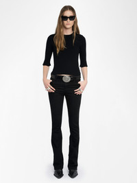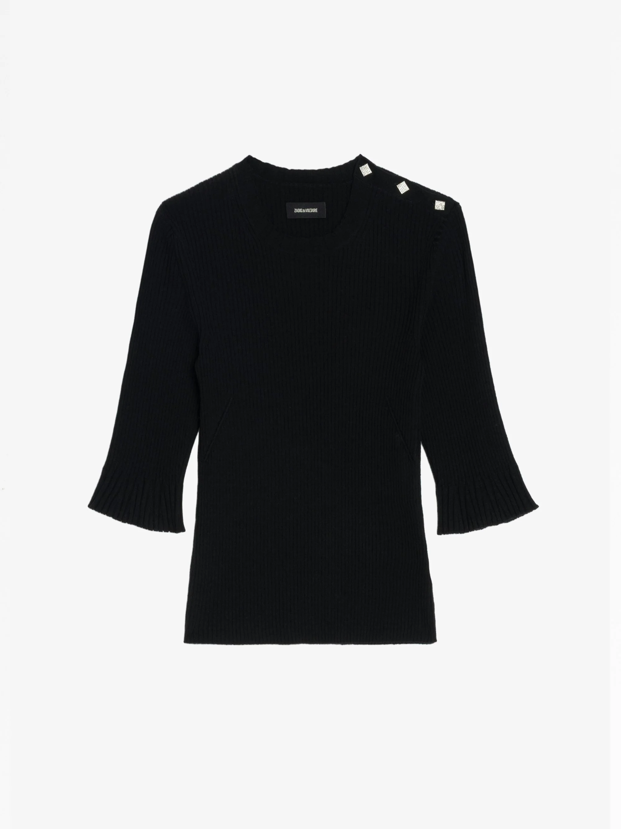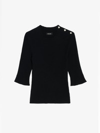 Round neck sweater with jewel buttons and 3/4 sleeves. Description & details - Sweater in wool and cashmere - Round neck - Buttoned shoulders with jewel buttons - 3/4 sleeves Model is 178 cm / 5' 10" and is wearing a size S This item fits true to size. Choose your usual size. Composition 90% Merino wool* 10% Polyester Care - Hand-wash or machine-wash on a 20°C wool cycle with a maximum spin speed of 400 rpm - Do not wring - Air dry flat - Iron inside out at a maximum of 110°C, avoiding any customised details Product code: KWSW02828_BLACK