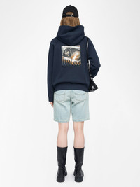 Hooded sweatshirt with rhinestone photoprint on the back. Description & details - Hooded sweatshirt - Rhinestone photoprint on the back - Round neck - Front pocket - Long sleeves Model is 180 cm / 5' 10" and is wearing a size S This item fits true to size. Choose your usual size. Composition 62% Cotton** 19% Polyester** 19% Cotton** Care - Machine-wash inside out on a 30°C delicate cycle with similar colours - Air dry - Iron inside out at a maximum of 110°C, avoiding any customised details Product code: JWSS01667_ENCRE