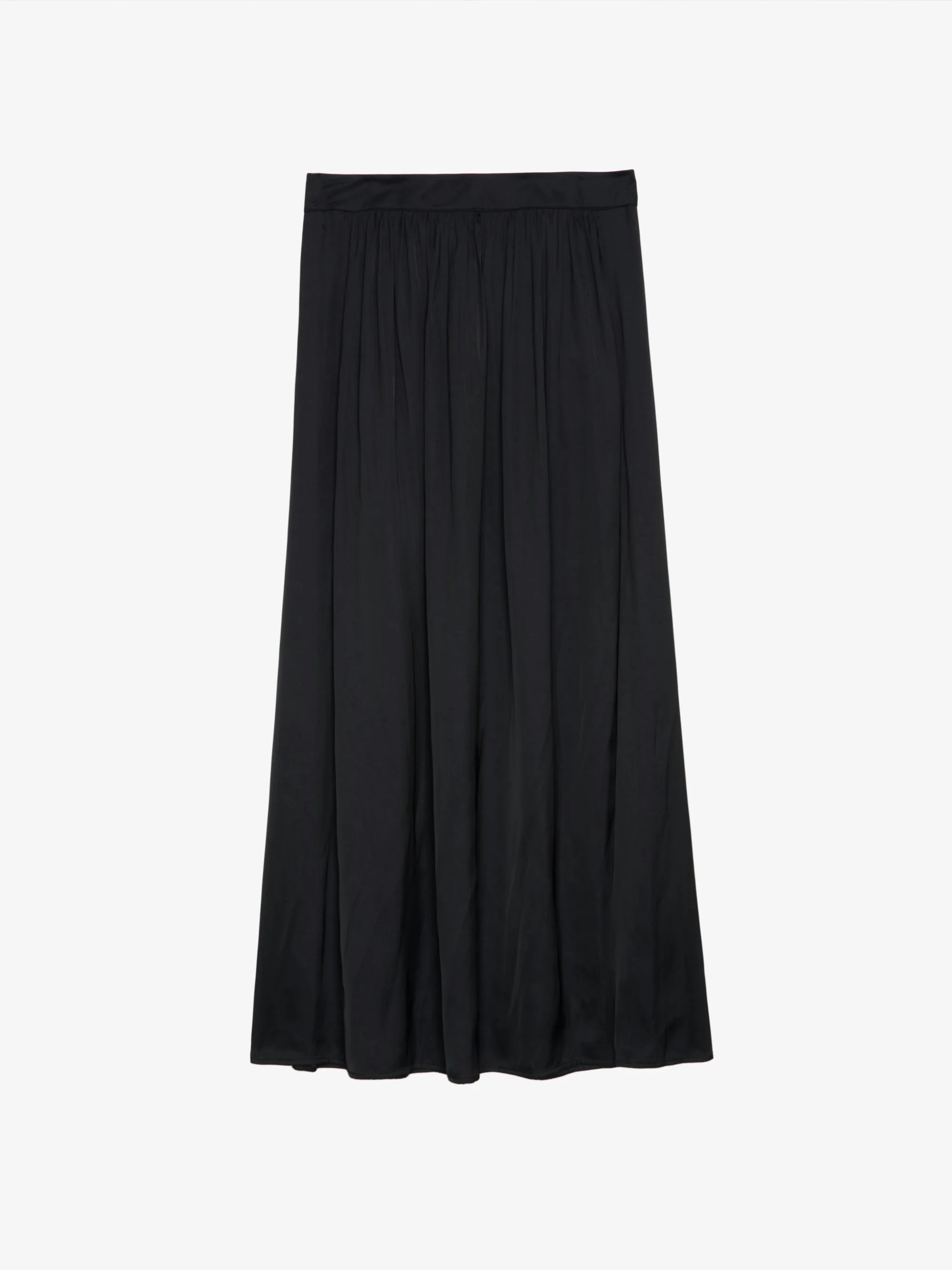 Elegant and endlessly versatile, this long black satin pleated skirt flows with every step thanks to its finely gathered pleats and fluid silhouette. The luxe satin finish enhances its movement, while a subtle side slit and jewel-button detailing add modern allure. A refined take on the black satin pleated skirt that transitions seamlessly from day to night. Description & details -Women’s long black satin pleated skirt designed with fluid movement and soft draping -Features fine gathering and pleats throughout for added texture and shape -Finished with a discreet side slit for ease and a hint of edge -Back zip closure with a jewel button accent for a polished look -A standout black satin pleated skirt that blends sophistication with statement appeal Model is 176 cm / 5' 9" and is wearing a size 36 This item is true to size. We recommend buying your usual size. Composition 57% Polyester** 43% Polyester Care - Hand-wash or machine-wash inside out in a mesh laundry bag on a 20°C delicate cycle with a maximum spin speed of 400 rpm - Air dry flat - Iron inside out at a maximum of 110°C Product code: WWSK01602_BLACK