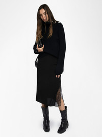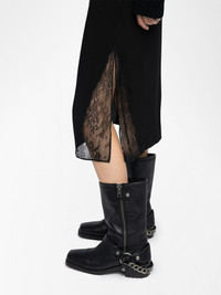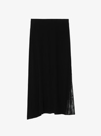 Mid-length lingerie-inspired skirt in viscose with lace. Description & details - Mid-length lingerie-inspired skirt - Slit with lace - Back zip closure - Fluid cut Model is 178 cm / 5' 10" and is wearing a size S This item fits true to size. Choose your usual size. Composition 100% Viscose** Care - Hand-wash or machine-wash inside out in a mesh laundry bag on a 20°C delicate cycle with a maximum spin speed of 400 rpm - Air dry flat - Iron inside out at a maximum of 110°C Product code: WWSK01637_BLACK