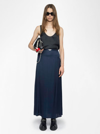 Long viscose satin skirt with back slit, zip fastening and metal wings on the belt. Description & details - Long satin skirt - Back slit - Zip fastening - Metal detail on the belt - Fluid cut Model is 180 cm / 5' 10" and is wearing a size 36 This item fits true to size. Choose your usual size. Composition 100% Viscose** Care - Hand-wash or machine-wash inside out in a mesh laundry bag on a 20°C delicate cycle with a maximum spin speed of 400 rpm - Air dry flat - Iron inside out at a maximum of 110°C Product code: WWSK01613_ENCRE