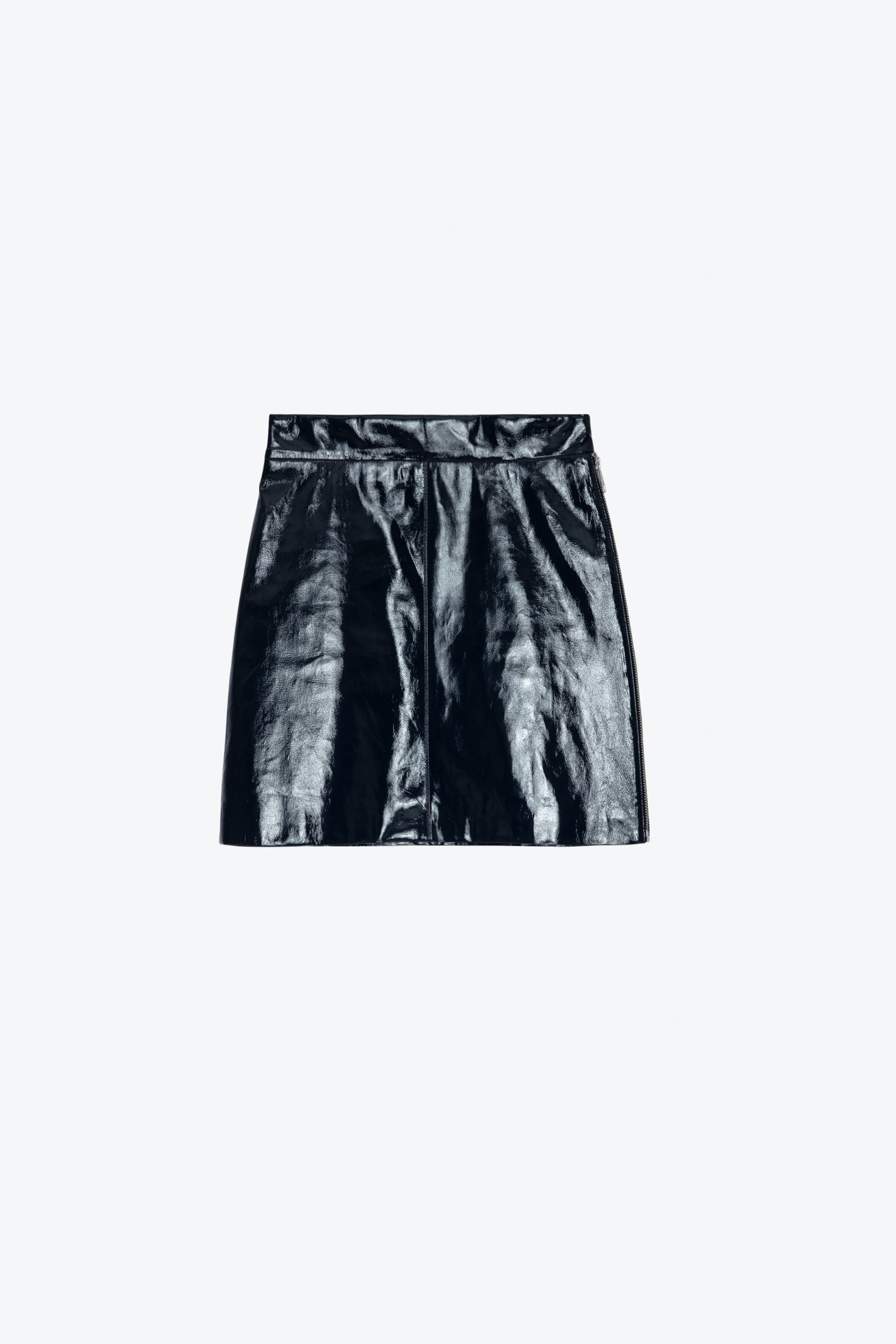 Women’s short navy blue vinyl leather skirt with zip. Description & details - Women’s short navy vinyl leather skirt - Side zip fastening - Press stud at waist - Overstitched detailing Model is 179 cm / 5' 10" and is wearing a size 36 This item is true to size. We recommend buying your usual size. Composition 100% LAMBSKIN Care This garment should be cared for by a leather professional. Product code: RWSK00047_MARINE