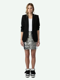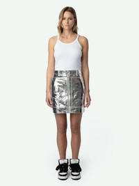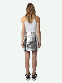 Silver metallic-effect leather mini skirt with zip fastening, pockets and cut-outs. Description & details - Women’s Silver metallic-effect leather straight-cut mini skirt - Zip and button fastening and belt loops - 2 side pockets and 2 patch pockets on the back - Cut-outs - Tone-on-tone inner lining Model is 175 cm / 5' 8" and is wearing a size 36 This item is true to size. We recommend buying your usual size. Composition 100% GOAT LEATHER Care Do not expose your item to a source of heat or to sunlight for a prolonged period. In the event of accidental exposure to water, leave your item to dry at room temperature, away from direct light. To maintain the shine of your smooth or crumpled leather item, use a leather cream or polish. If your item needs cleaning, we recommend contacting a leather specialist. Product code: RWSK00005_SILVER