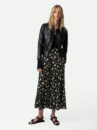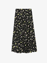 Women’s long black floral-print skirt. Description & details - Women’s long black skirt - Contrasting two-tone floral print - Belt and zip fastening at back - Flared hem Model is 174 cm / 5' 8" and is wearing a size S This item is true to size. We recommend buying your usual size. Composition 100% VISCOSE Product code: WWSK00378_NOIR