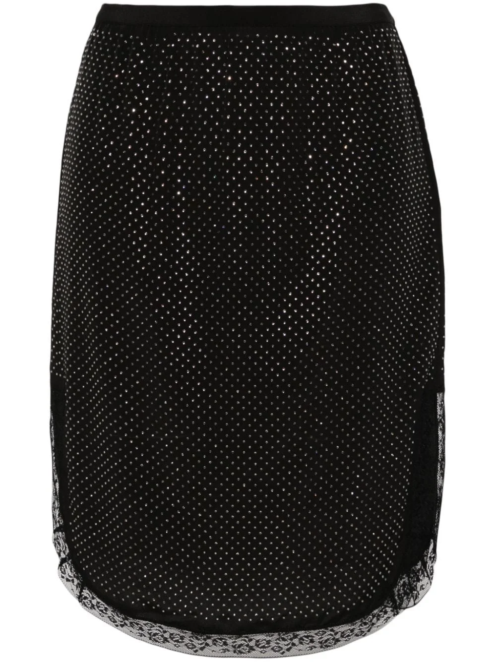 Jozy midi skirt Zadig&Voltaire is coveted for its ability to balance the edgy with the romantic. Ticking both boxes, this Jozy skirt is cut from black silk crepe to a slip silhouette that’s doused with crystals from the elasticated waist to the lace-trimmed hem. Highlights - Black - Silk - Crepe texture - Crystal embellishment - Elasticated waistband - Lace trim - Side slits - Knee-length - Curved hem - Unlined Imported Composition Lining: Polyamide 100% Outer: Silk 100% Washing instructions Hand Wash