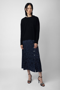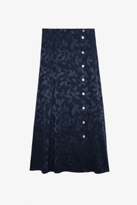 Women’s long navy blue silk buttoned skirt with jacquard star. Description & details - Women’s long Encre navy blue silk skirt - Jacquard stars - Button fastening on the side Model is 179 cm / 5' 10" and is wearing a size 36 This item is true to size. We recommend buying your usual size. Composition 100% SILK Care Hand-wash or machine-wash your garment at a maximum of 68°F, in a mesh laundry bag and inside out, with a gentle spin cycle. Air-dry. Iron your garment on a low heat setting or steam from a distance of 8 in, being particularly careful with customised details. Product code: WWSK00351_ENCRE