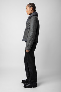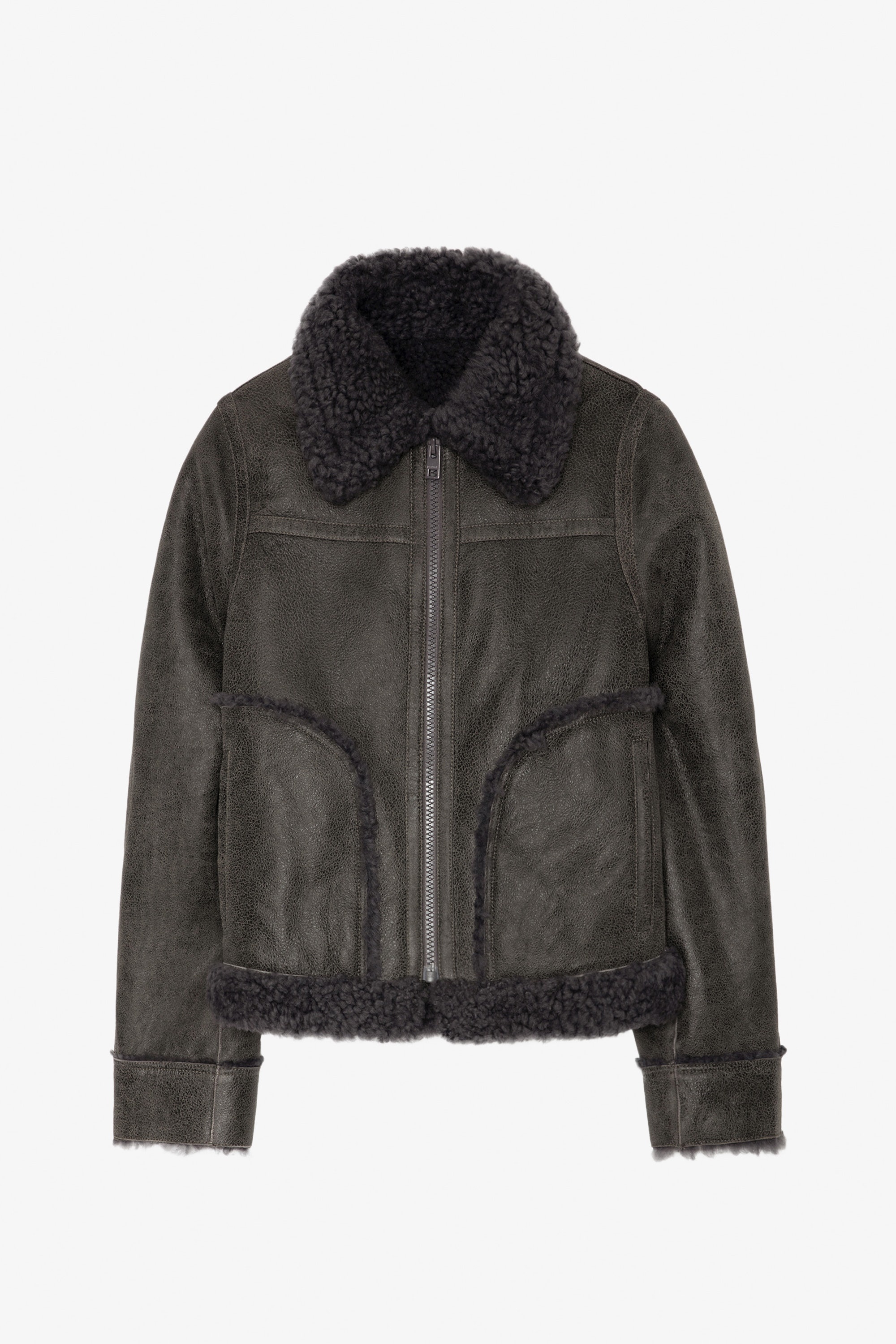 Women’s anthracite leather jacket with shearling lining and trim. Description & details - Women’s anthracite leather jacket - Shearling collar, lining and trim - Zip fastening - Topstitched details on front, back and elbows - Wide collar and long sleeves Model is 179 cm / 5' 10" and is wearing a size S This item is true to size. We recommend buying your usual size. Composition 100% LAMBSKIN Care Do not expose your item to a source of heat or to sunlight for a prolonged period. In the event of accidental exposure to water, leave your item to dry at room temperature, away from direct light. To maintain the shine of your smooth or crinkled leather item, use a leather cream or polish. If your item needs cleaning, we recommend contacting a leather specialist. Product code: RWOW00210_ANTHRACITE