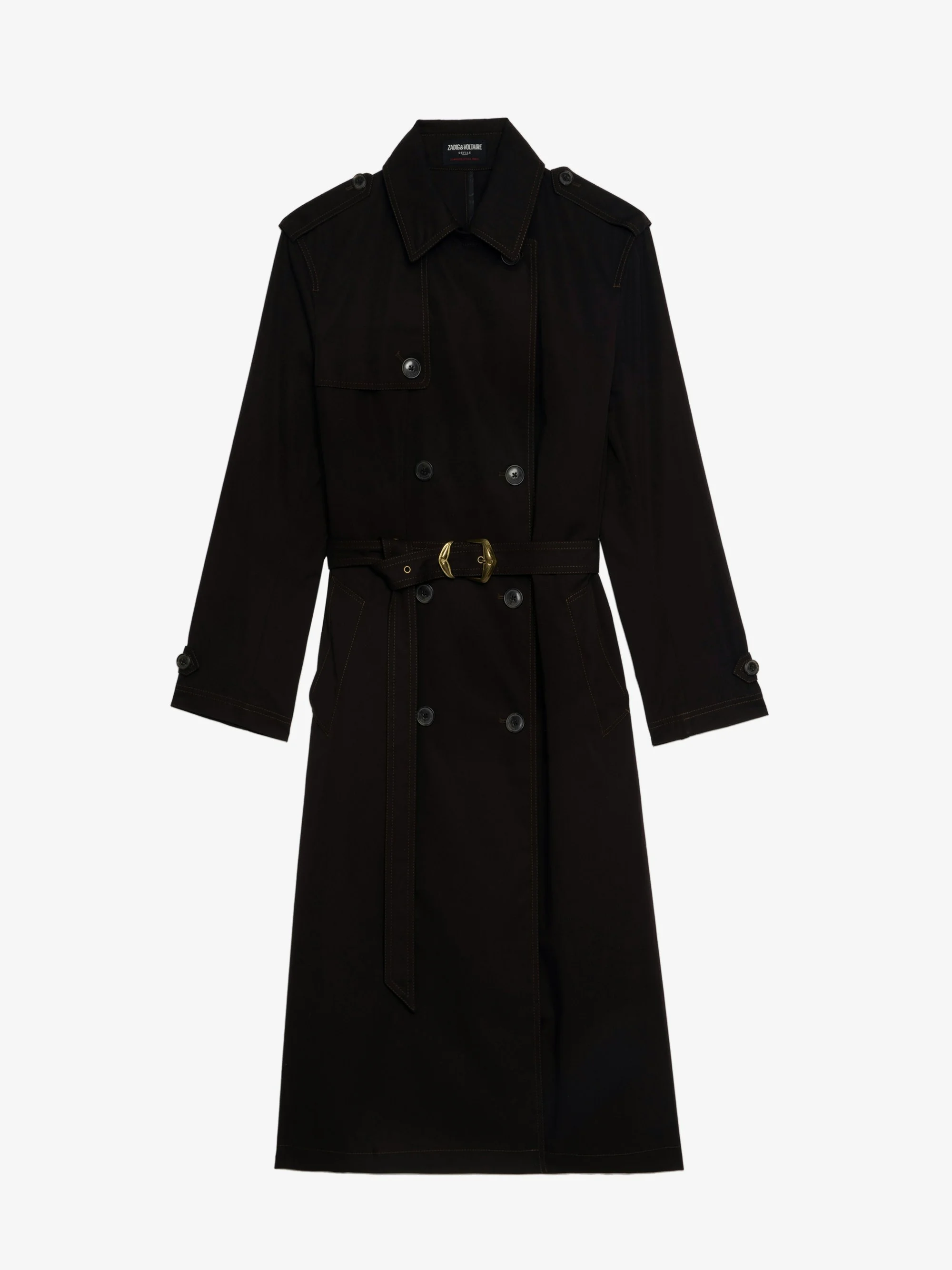 Crisp cotton trench coat, long sleeves, removable belt and double-breasted button fastening. Description & details - Trench coat in 100% cotton - Classic collar - Double-breasted button fastening - Long sleeves - Welt pockets - Removable belt Model is 180 cm / 5' 10" and is wearing a size S This item fits true to size. Choose your usual size. Composition 100% Cotton** Care This garment should be dry-cleaned only. Product code: WWCO01715_DARK CHOCOLATE
