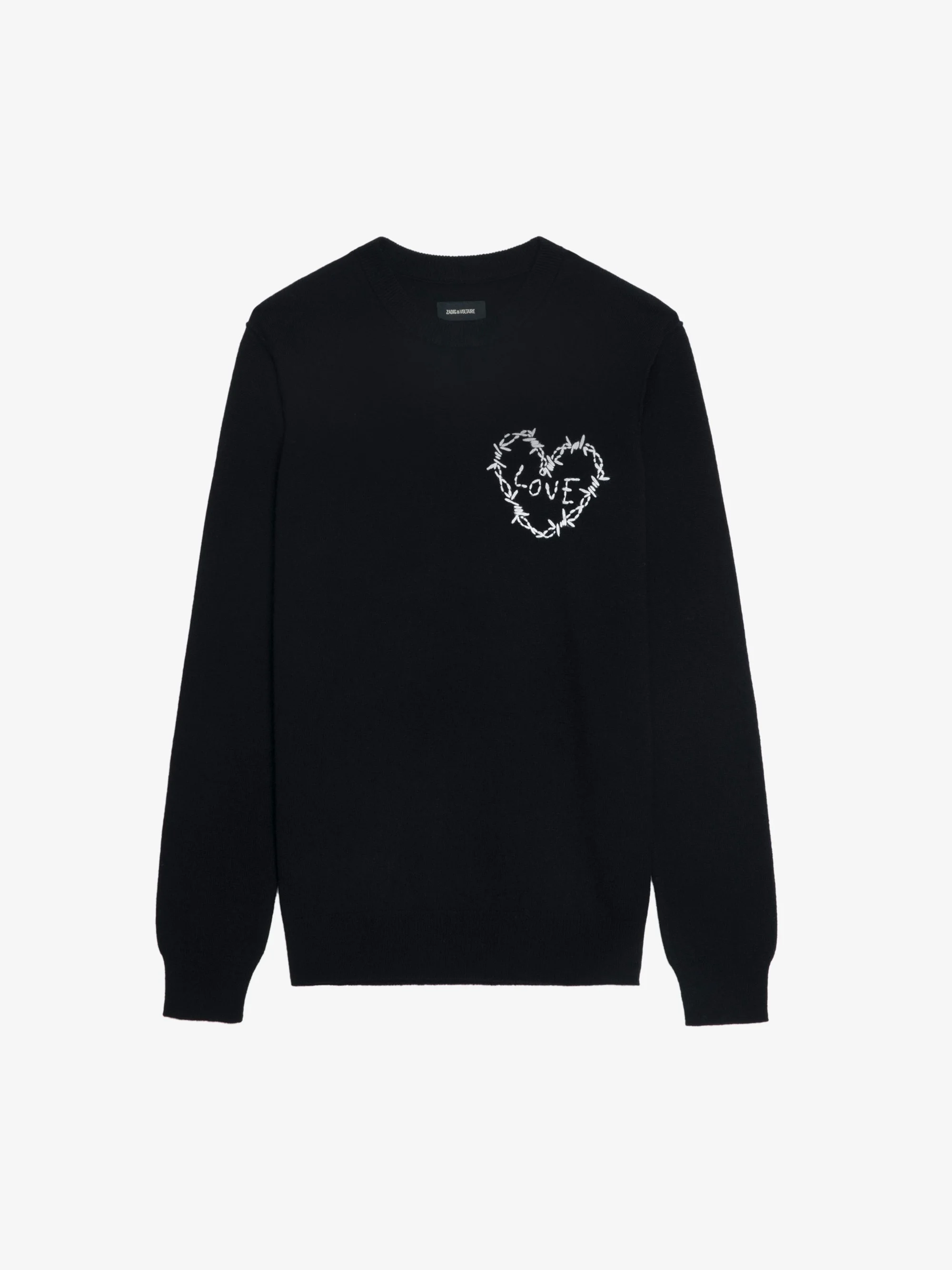 Sweater with round neck and heart embroidery on the front. Description & details - Wool and cashmere sweater - Heart embroidery on the front - Round neck - Long sleeves Model is 180 cm / 5' 10" and is wearing a size S This item fits true to size. Choose your usual size. Composition 90% Wool* 10% Cashmere Care - Hand-wash or machine-wash on a 20°C wool cycle with a maximum spin speed of 400 rpm - Do not wring - Air dry flat - Iron inside out at a maximum of 110°C, avoiding any customised details Product code: KWSW02900_BLACK