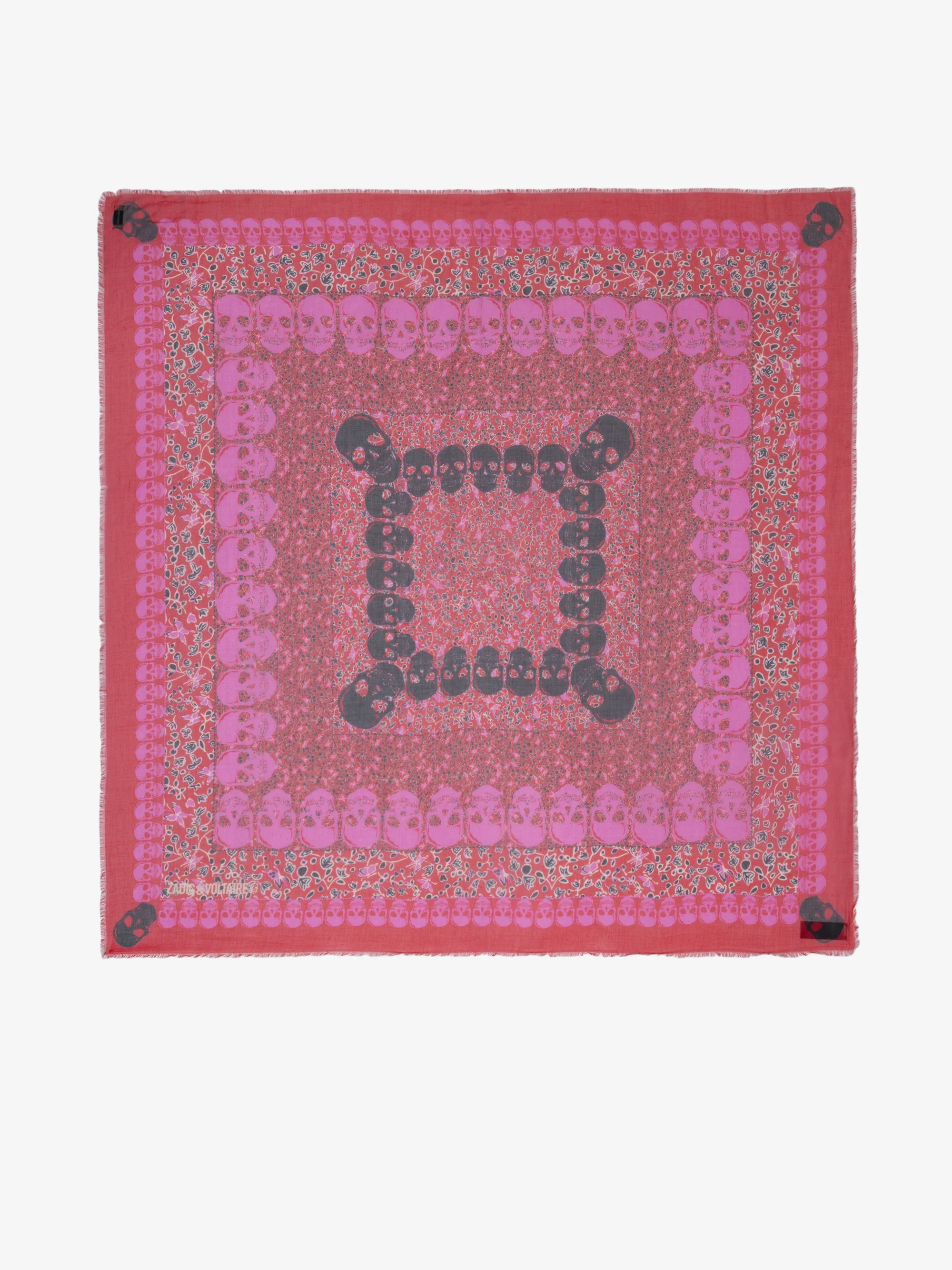 Modal scarf with skull and flower print. Description & details - Scarf - Skull and flower print 135 x 135 cm Composition 100% Modal** Care - Hand-wash or machine-wash inside out in a mesh laundry bag on a 20°C delicate cycle with a maximum spin speed of 400 rpm - Air dry flat - Iron inside out at a maximum of 110°C Product code: OWSC01519_LADY