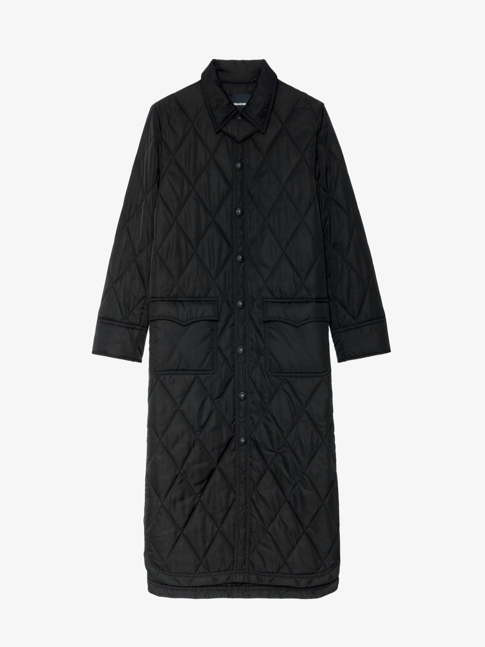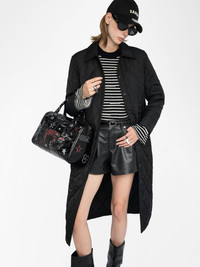 Long plain quilted parka with multiple pockets and button closure. Description & details - Long unique quilted parka - Classic collar - Button closure with jewel buttons - 2 patch pockets and 2 chest pockets - Long sleeves - Slits - Wing signature on the back Model is 180 cm / 5' 10" and is wearing a size S This item fits true to size. Choose your usual size. Composition 67% Polyester 33% Polyester** Care This garment should be dry-cleaned only. Product code: WWOW01683_BLACK