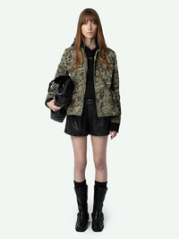 Short khaki cotton canvas combat parka with camouflage heart print and pockets. Description & details - Women’s Grass khaki cotton canvas short combat parka - Heart camouflage print - Shirt collar and zip fastening with button placket and press studs - Gusseted cut-outs on the back - 2 chest pockets with buttoned flaps and 2 side pockets with pointed flaps - Long sleeves with hook-and-loop tab cuffs - Drawstrings with stoppers on the inside Model is 175 cm / 5' 8" and is wearing a size S This item is true to size. We recommend buying your usual size. Composition 100% COTTON** Care This garment should be dry-cleaned only. Product code: WWOW00647_GRASS