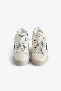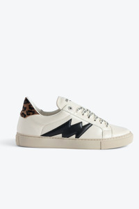 Women's low top sneakers with black flash pattern on sides and ZV printed laces. Description & details - Women's Zadig&Voltaire low-top sneakers in white leather - Black flash motif on side - Metallic leather reinforcements at back - ZV signature laces - Printed tongue - Made in Portugal Composition 100% COW LEATHER Product code: SWSN00467_FLASH