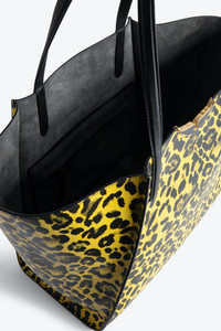 Women’s reversible tote bag in yellow leopard-print patent leather with handle and metal wings. Description & details - Women’s Le Borderline bag in Holiday yellow patent leather - Leopard print and grey suede lining - Black lacquered gold-tone metal wings - Leather handles - Inside pocket with zip fastening - Carry by hand or over the shoulder - This reversible style can be used inside out occasionally. We recommend waterproofing the suede before using it for the first time Height x Width x Length: 11.8 x 13.4 x 6.4 in. Composition 100% GOAT LEATHER Care - Protect your leather item from humidity and any source of heat (radiator, sun) - Avoid your item coming into contact with water - Regularly care for your leather item using a colourless nourishing cream for leather, suitable for leather goods - Ensure you wear your item with similar colours - Avoid overfilling your bag to ensure its durability - In case of stains, contact a leather professional Product code: LWBA02412_HOLIDAY