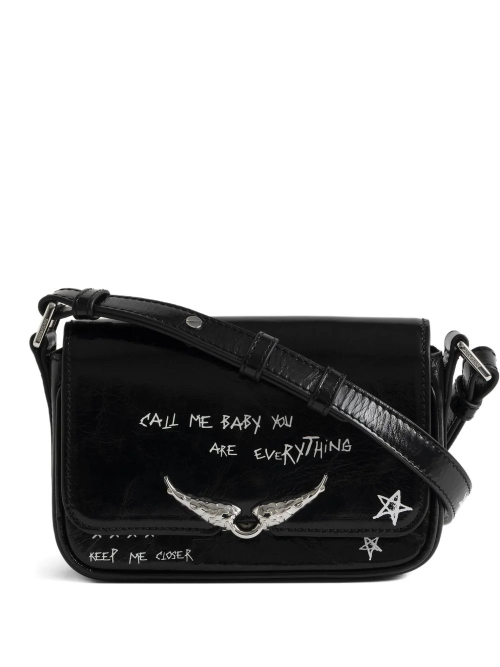 Le Zazi Vintage satchel bag Highlights - Black - Bovine leather - Silver-tone hardware - Shoulder strap - Graffiti design - Signature wings Imported Composition Calf Leather 100% SIZE & FIT Measurement WIDTH 7.08 in(18 cm) HEIGHT 4.13 in(10.5 cm) DEPTH 1.37 in(3.5 cm) Washing instructions Specialist Cleaning