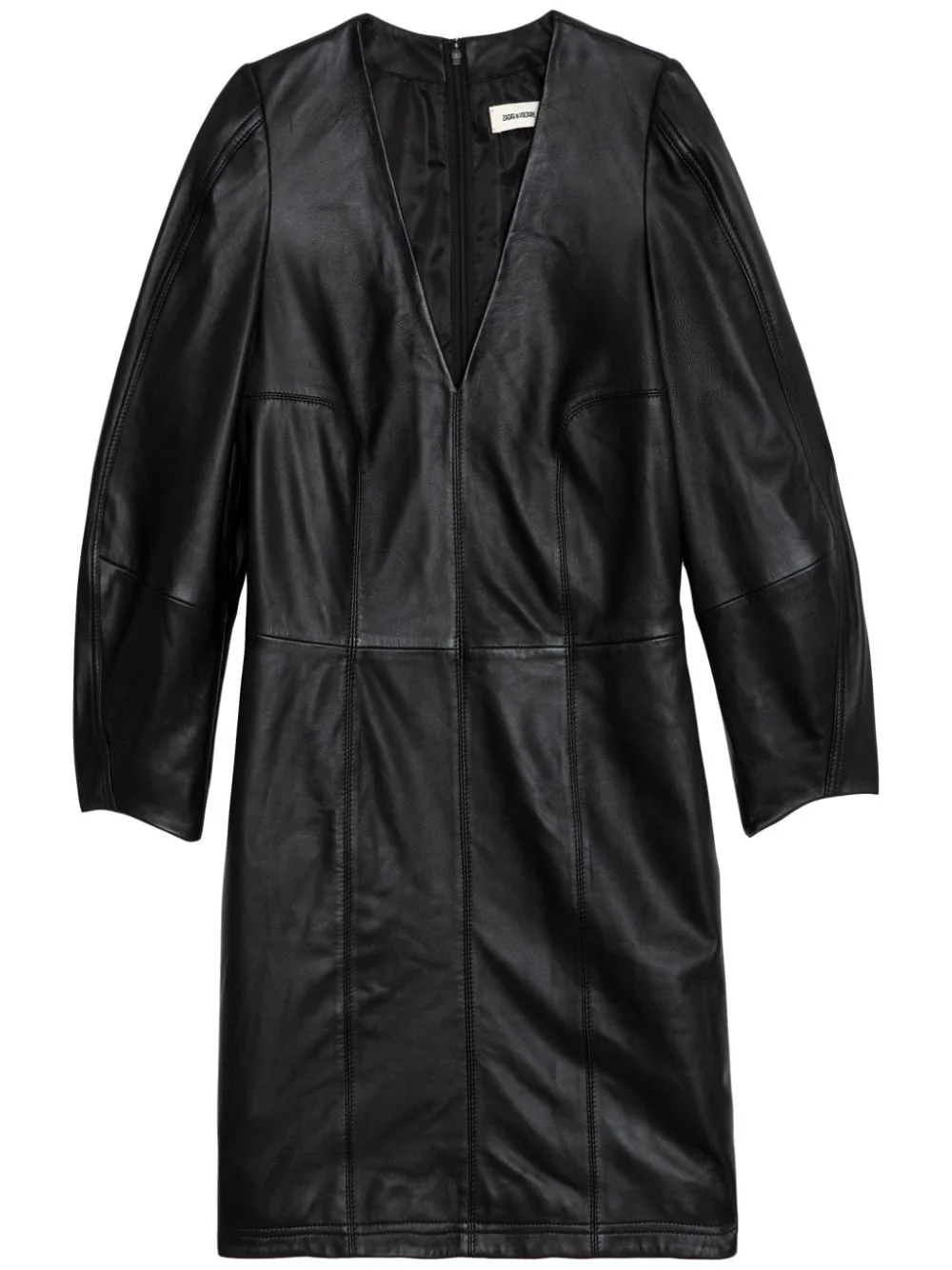 leather minidress Highlights - Black - Lambskin - Seam detailing - V-neck - Concealed rear zip fastening - Three-quarter length balloon sleeves - Pencil silhouette - Straight hem - Thigh-length Imported Composition Lamb Skin 100%