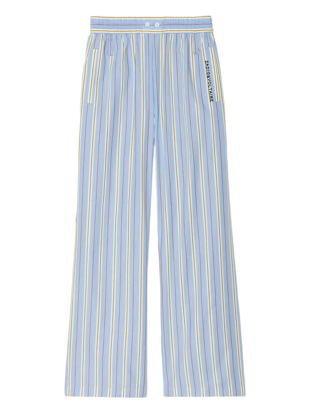 logo-detail striped trousers Highlights - Light blue - Striped - Elasticated waist - Back pocket - Straight leg - Button detail Imported Composition Cotton 100% Washing instructions Machine Wash