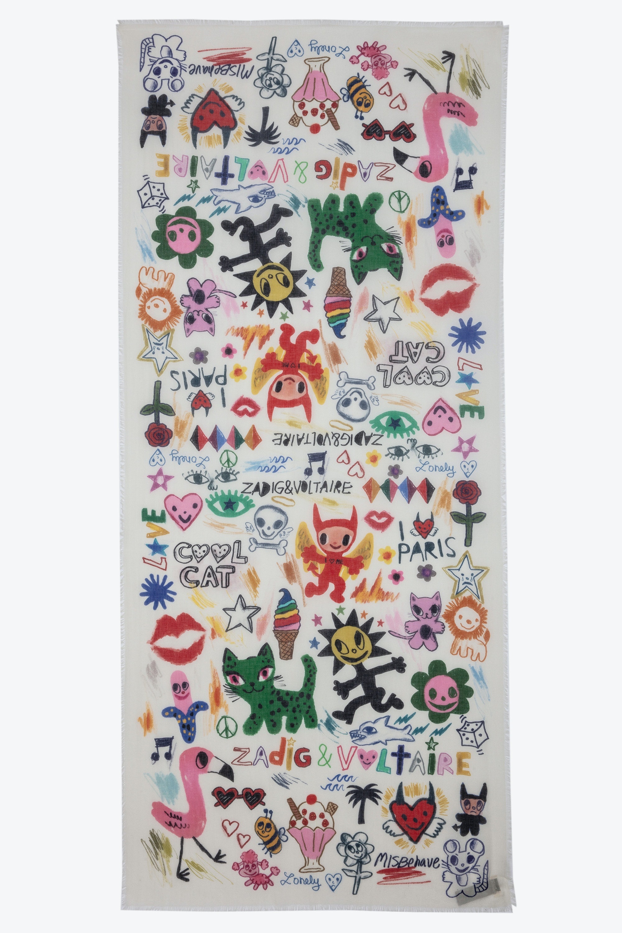 Ecru cotton long scarf with customised details designed by Humberto Cruz. Description & details Customized details designed by Humberto Cruz, an artist and illustrator from San Diego. Influenced by pop culture, fashion and colors, he describes his work as spontaneous and quirky. - Women’s Flash ecru cotton long scarf - Fringed trim Composition 100% COTTON Care - Hand-wash or machine-wash inside out in a mesh laundry bag on a 20°C delicate cycle with a maximum spin speed of 400 rpm - Air dry flat - Iron inside out at a maximum of 110°C Product code: OWSC00467_FLASH