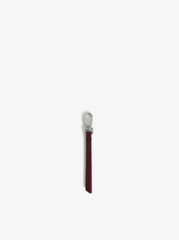 Grained leather strap keyring with ‘Je m’en fous’ message. Description & details Customize your small leather goods with this clip-on leather strap keyring. Play with different colors and signature messages to tailor your items to your style! - Women’s strap keyring in two-tone Furious burgundy grained leather - Snap hook - Printed ‘Je m’en fous’ message Width x Height x Depth: 1 x 12,5 x 0,4 cm Composition 100% CALF LEATHER Product code: LWSG01288_FURIOUS