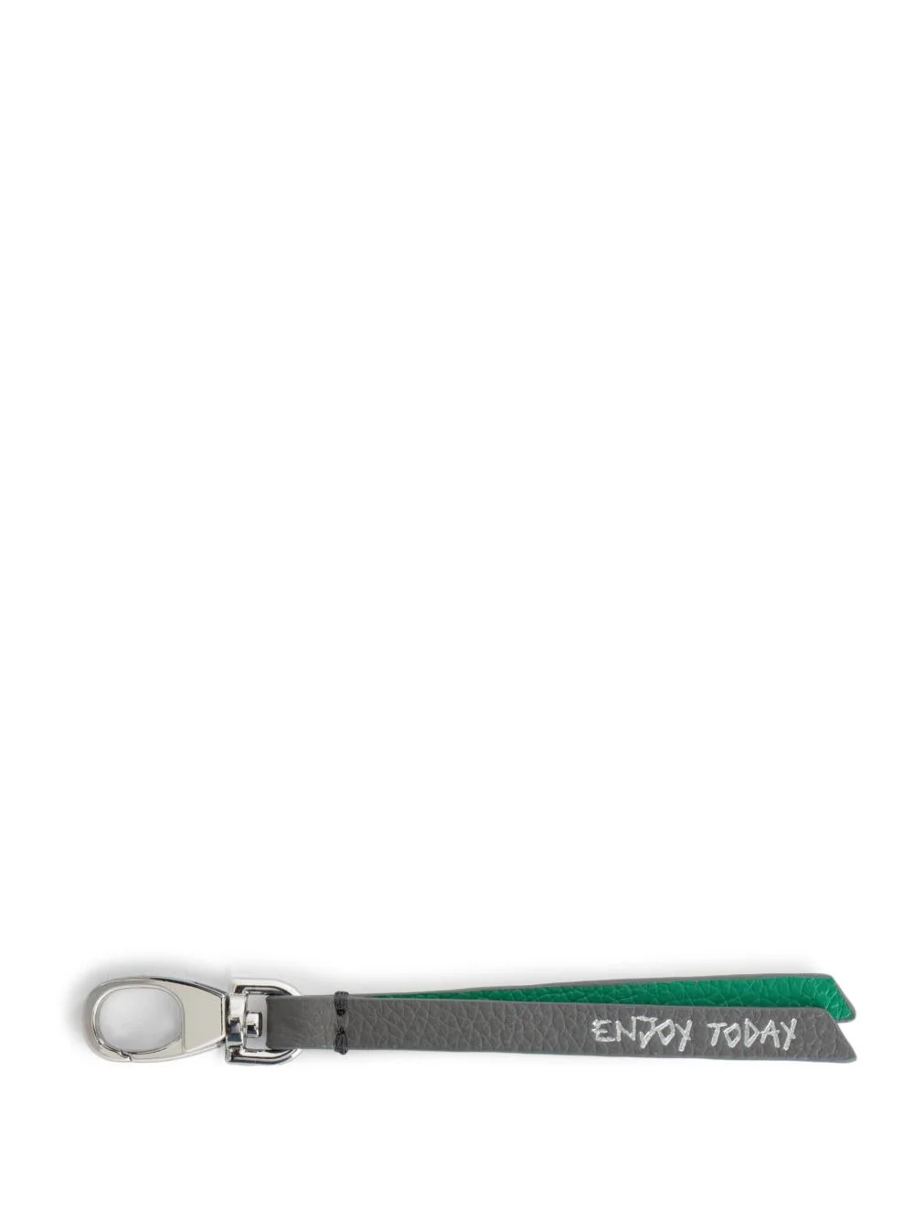 Love Link leather keyring Highlights - Medium grey/green - Calf leather - Grained texture - Slogan print - Lobster claw fastening - Silver-tone hardware Imported Composition Calf Leather 100%